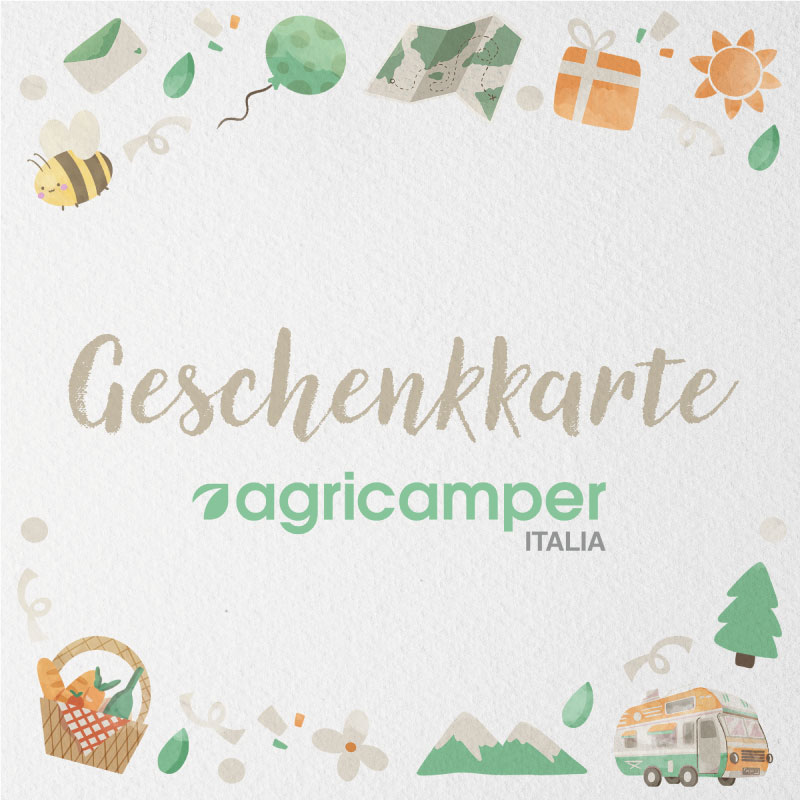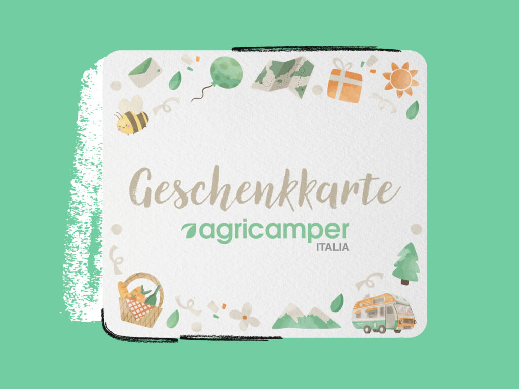 Die Agricamper Geschenkkarte ist eine digitale Geschenkidee für Wohnmobil-, Campervan- und Wohnwagenreisende, die Italien auf authentische Weise entdecken möchten. Statt eines klassischen Geschenks schenken Sie echte Erlebnisse: kostenlose 24-Stunden-Aufenthalte, Begegnungen mit lokalen Produzenten und unvergessliche Reisen.
