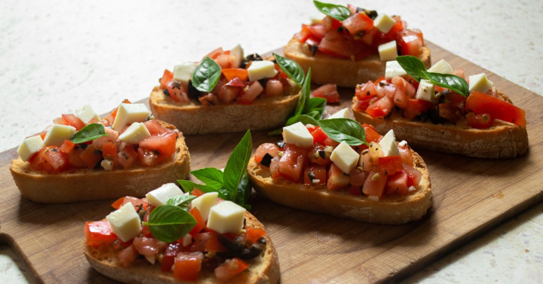 Tip: customise your bruschetta with garlic, mozzarella or cheeses bought at the farm.