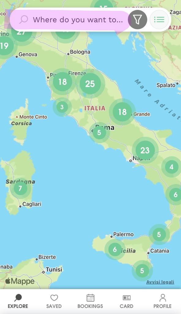 - cliccate sulla barra di ricerca “Dove vuoi andare?” che compare nella parte alta dell’app;
